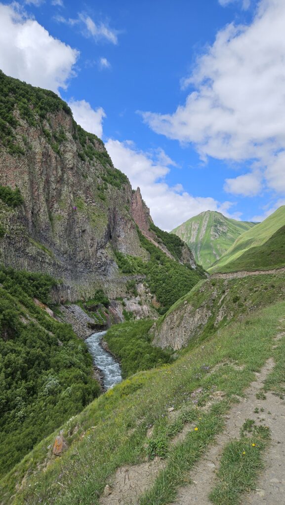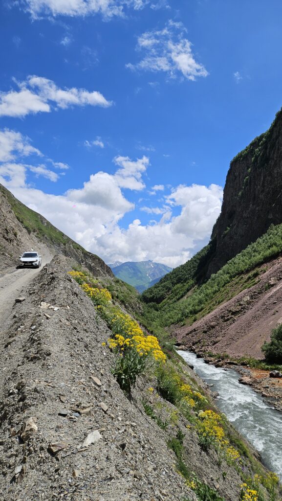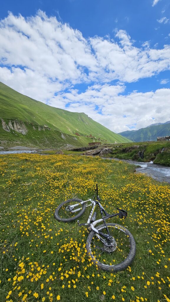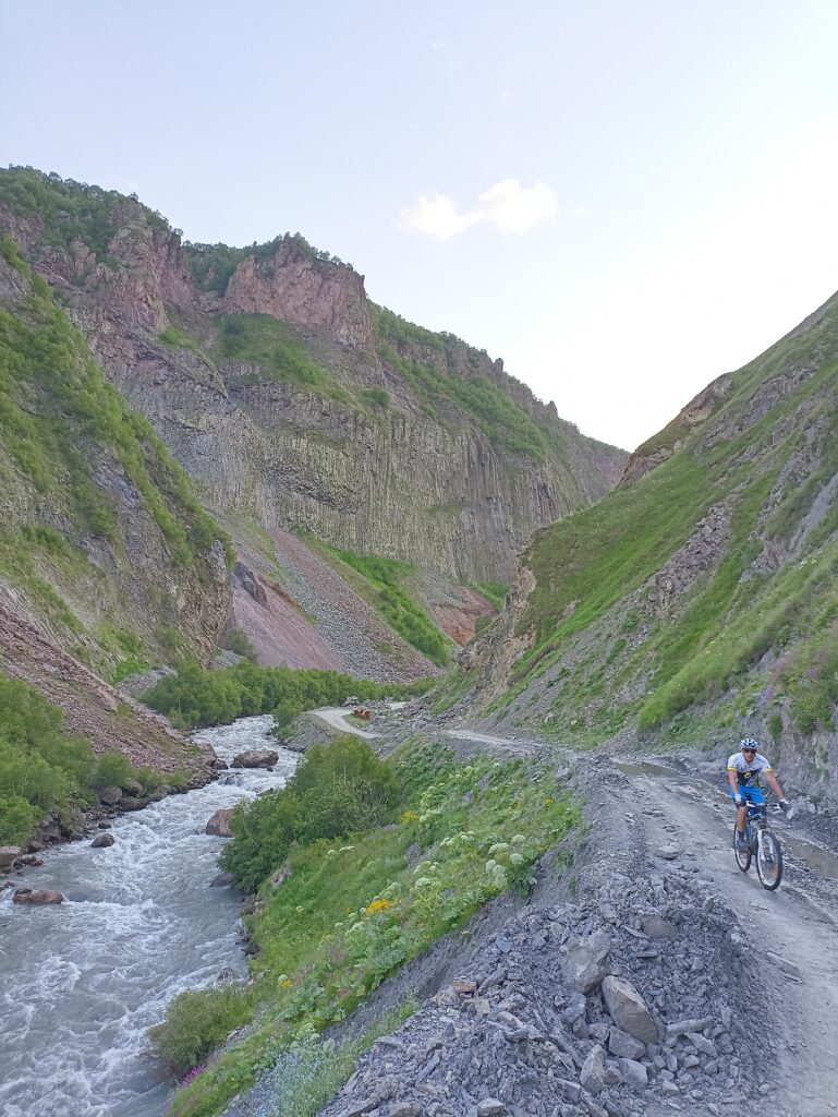 The Truso valley is a really famous hiking destination. We can visit Zakagori Fortress, deep Abano Mineral Lake, unique abandoned villages, and colorful travertine mineral springs where. With a mountain bike, you can cover it faster and enjoy shredding the amazing valley. Steep cliffs in the gorge will amaze you throughout the whole route, guaranteed.